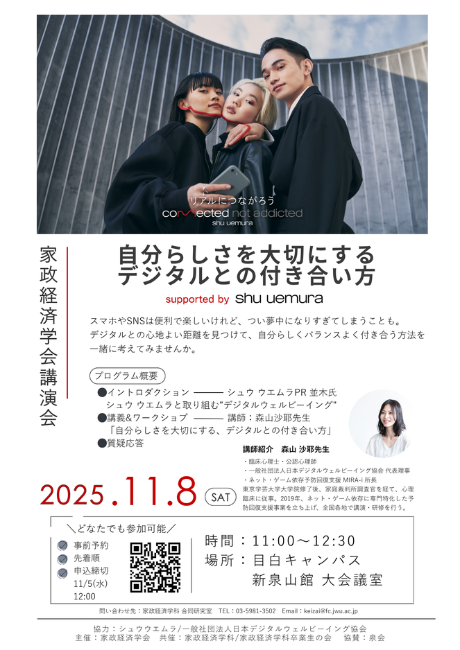 「Connected, not Addicted/リアルにつながろう」というメッセージのもと、デジタル社会における新しいウェルビーイングの形を提案しているシュウ ウエムラのサポートのもと開催します。